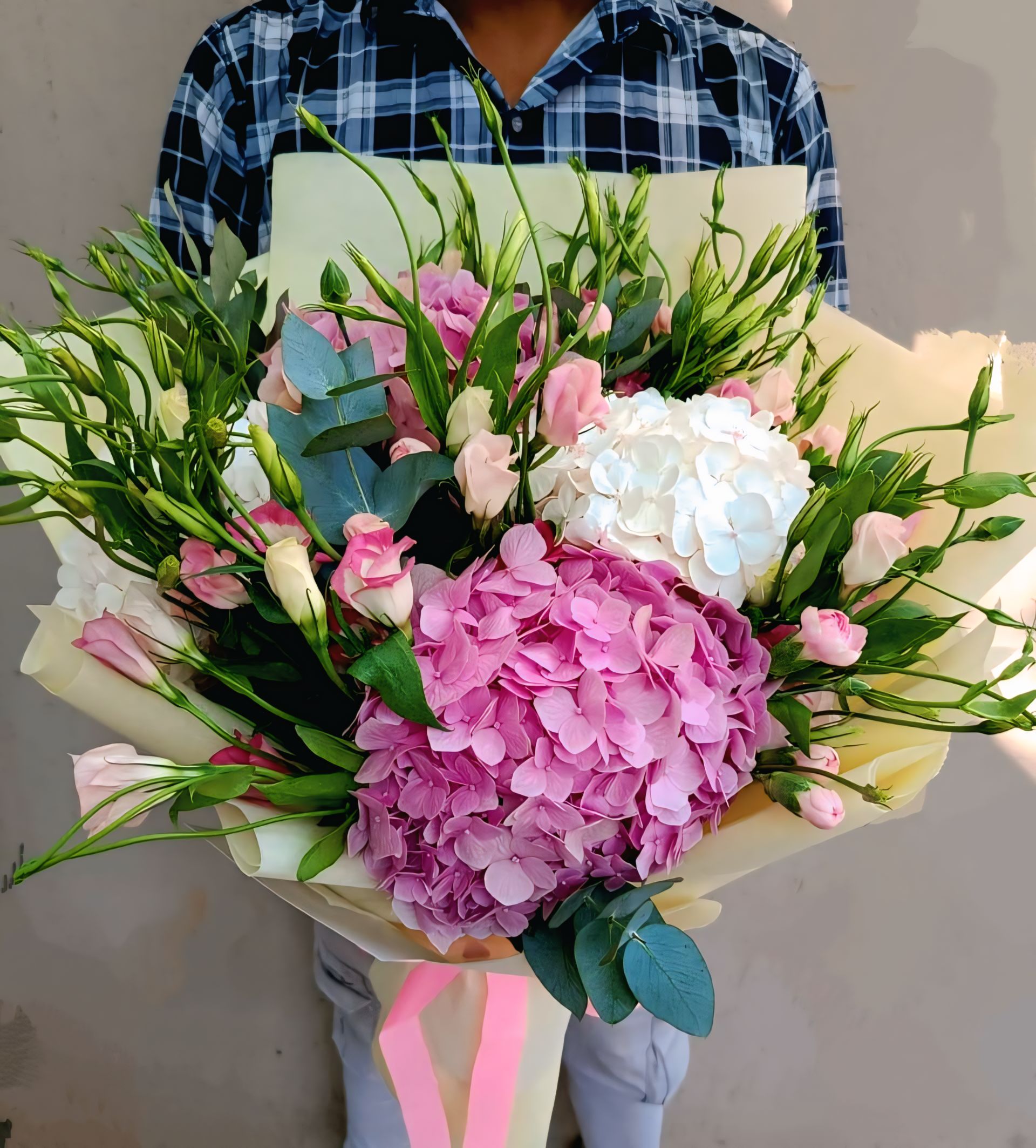 Hydrangea Pink Lisianthus Bouquet delivery in Bangalore
